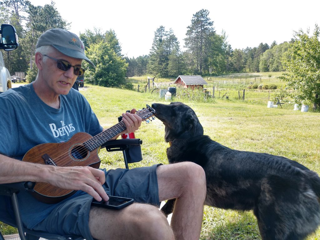 Singing to guinea hens, ducks and other farm animals near Tower, MN Even the farm dog enjoys Dave’s music!Music created by Rushing River Provincial Park